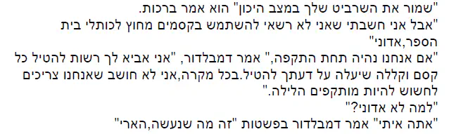 "בתחולדה קראה רק לי לעלות למעלה ולא להרמיוני וכאבה לי הצלקת. לא חשדתי בה. מה אני חשדניסט?