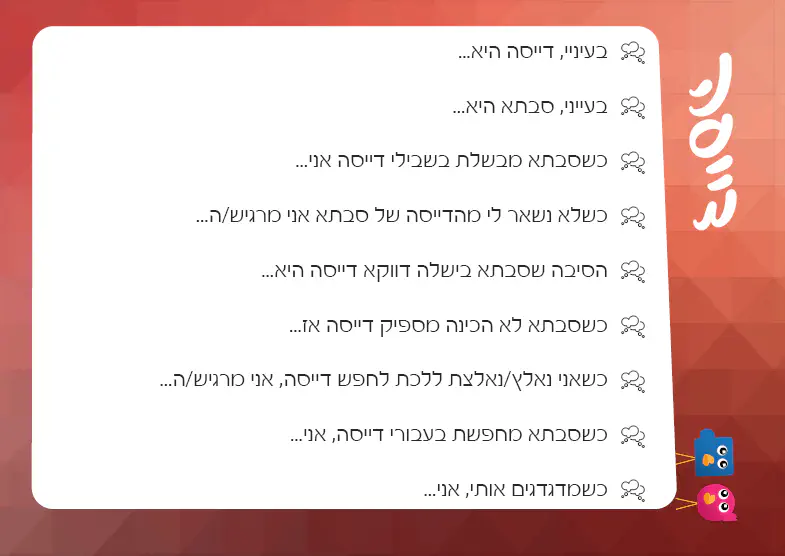 תשתפי אותו בתחושות שלך.