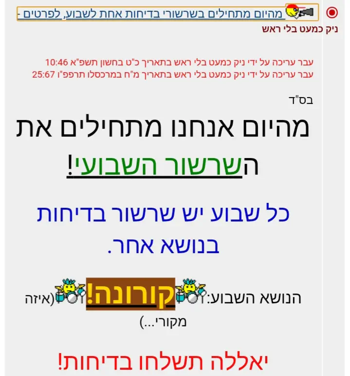 מהיום אנחנו מתחילים את השרשור השבועי!