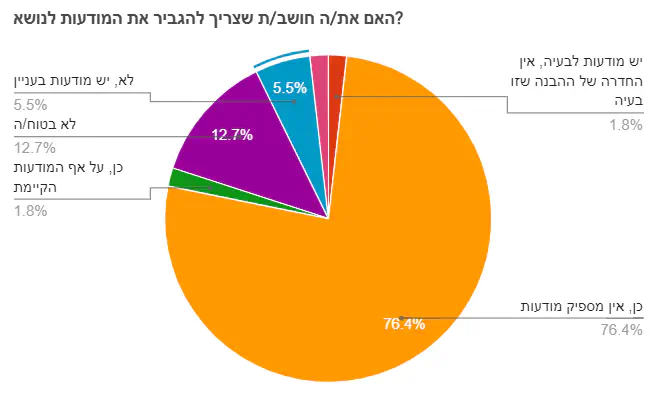 "אני ממש שמחה שאני פוגשת סקר כזה ויודעת שזה מעניין מישהו (בבית ובבית ספר מדברים על זה הרבה, אבל אני לא יודעת מה מחוץ לעיר...)"
