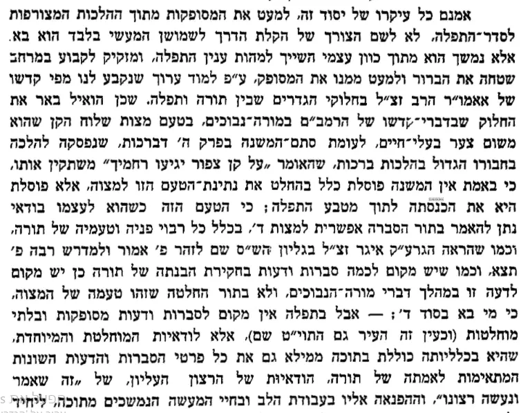 לכן אני מסרב להכנס לפרטים ורק מפגין ביטחון ואמון מלא – ולהראות שגם אם אין לי תשובה, אני עומד מול היהדות במורא גדול. וזה השיעור החשוב שאני יכול לתרום לבן שיחי.