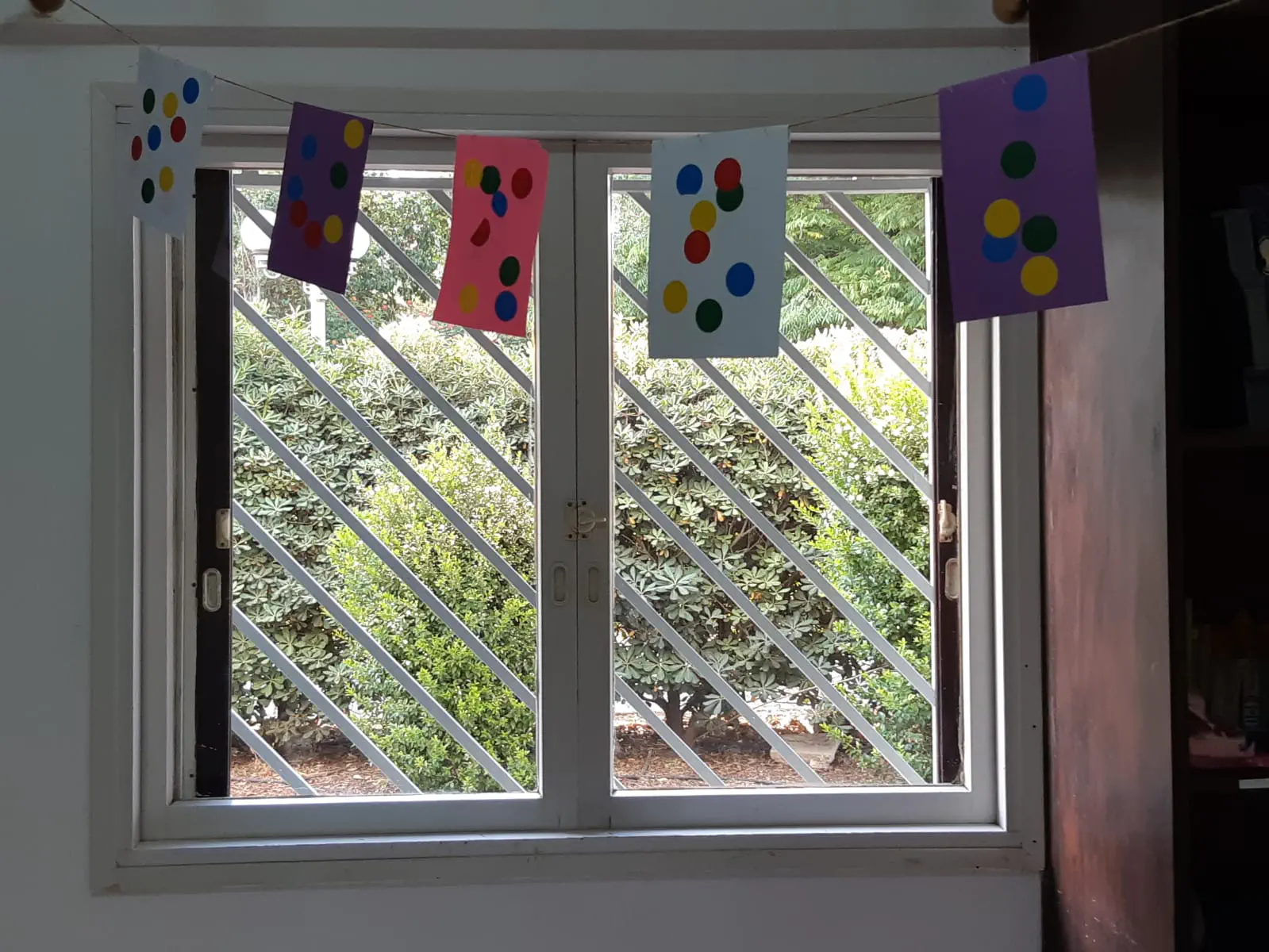 אופציה א'- מלבנים מבריסטול (לבן/צבעוני)- להדביק מדבקות משני הצדדים, ואז לתלות על חוט לאורך החדר.