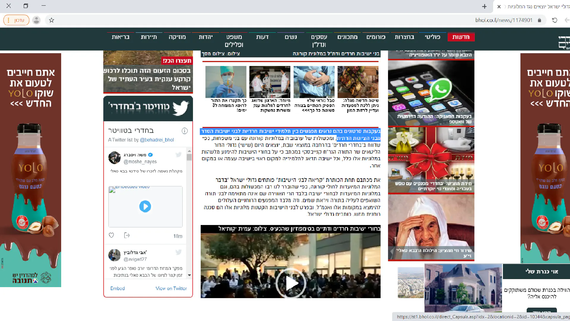 "מנהיג הציבור החרדי-ליטאי, הרב חיים קנייבסקי והרב גרשון אדלשטיין, אוסרים על השהות במלוניות הקורונה, גם אלו המיועדים לבחורי ישיבות בלבד זאת בשל מכשירי הטלוויזיה והאינטרנט בחדרים. "