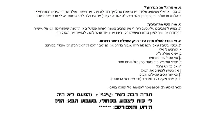 אמממ טוב אז ככה זה התחיל יום אחד השבוע שהזום היה משעמם והיה משעמם בכללי אז נכנסתי לאיזה ניק ישן ודפדפתי אחורה והגעתי לניק העורך של מה בחפ הישינים (מתחדשים עלק)