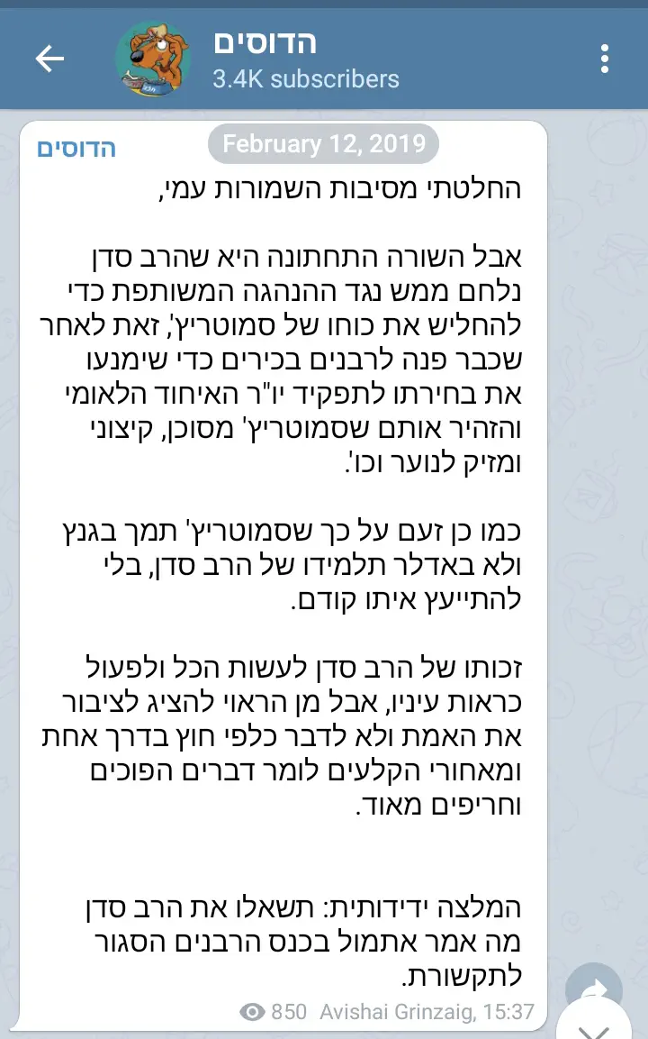 לגבי ההטחת האשמות בין הרב סדן לסמוטריץ