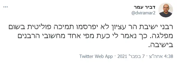 רק עכשיו הוא התחיל לצאת לשטח להקשיב ולראות את האותנטיות של הערכים הימניים.