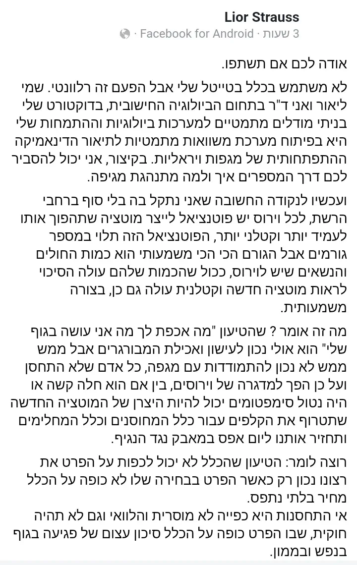 למדתי איך עובד החיסון הזה, במה הטכנולוגיה הזו שונה ממה שהיה קודם.