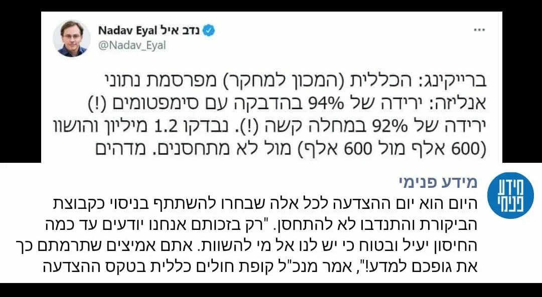 להיפך. גאווה להיות במדינה הראשונה בעולם בשיעור ההתחסנות.כינוי-לרגע