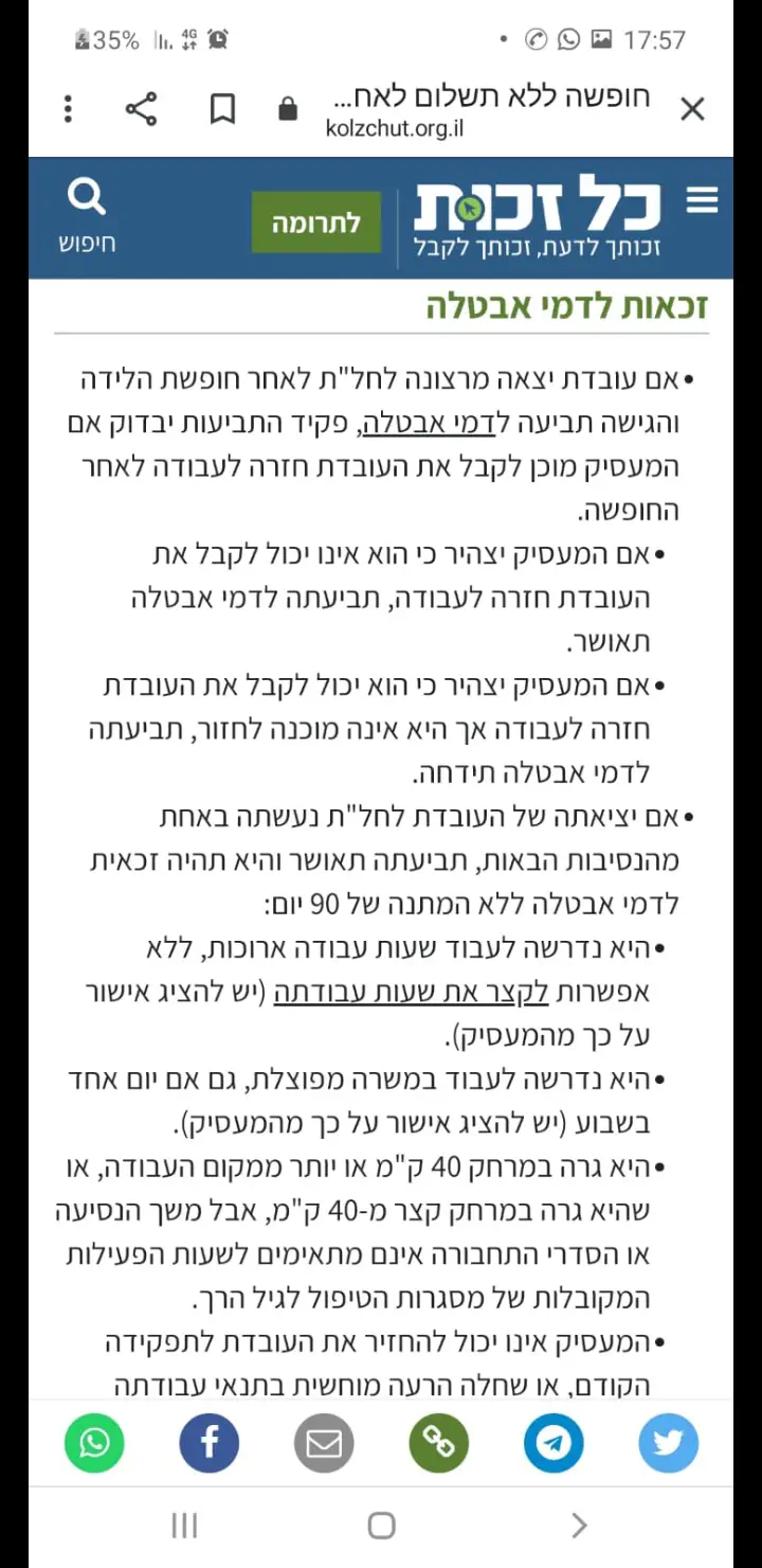 אני קבלתי דמי אבטלה בחל"ת ולא התפטרתי, חזרתי לאותו מקום עבודה אחרי 11 שבועות חל"ת, בתום 26 שבועות מהלידה.