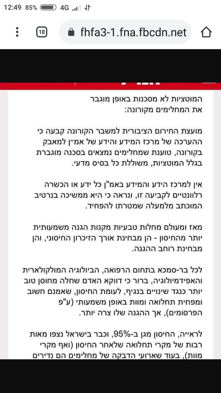 4. החיסון אמנם לא מונע הדבקה ב100% אבל גם אם ח"ו נדבקת הסיכוי שלך להבריא גדול לאין שיעור מאשר מישהו שלא התחסן.