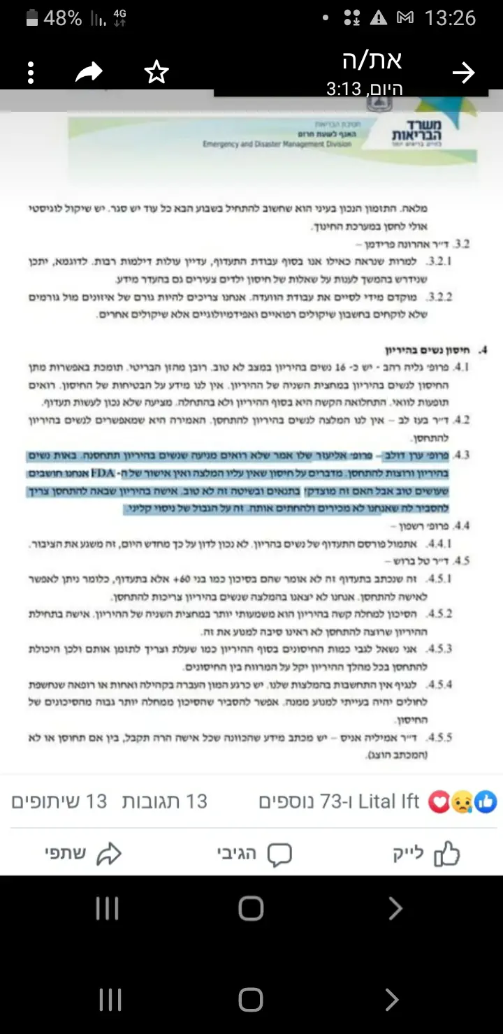 הניסוי נערך עכשיו על נשים בשיבא אבל עדיין המליצו לכל הנשים בהריון כולל בסיכון להתחסן בלי לדעת תוצאות.