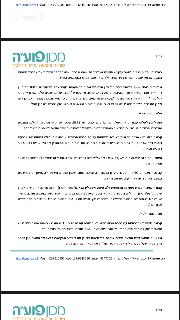 1. לכל אחת יש את הגוף שלה, עם נטיות הסוכר שלה, עם הטיפול שלה במצבה - ולכן הדין של כל אחת יהיה שונה!!