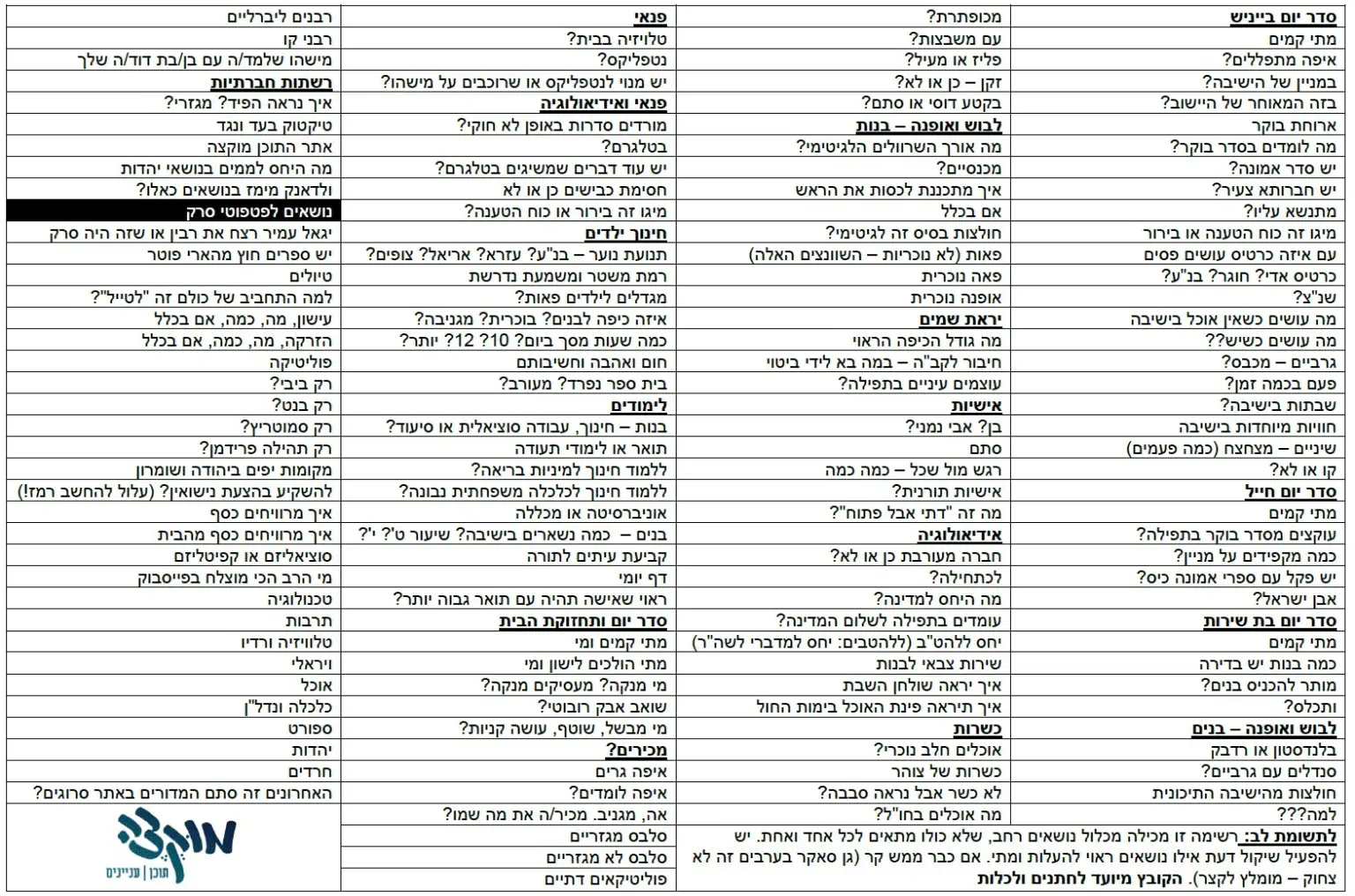 (כל זוג עם מה שטוב לו והתדירות שהוא צריך)