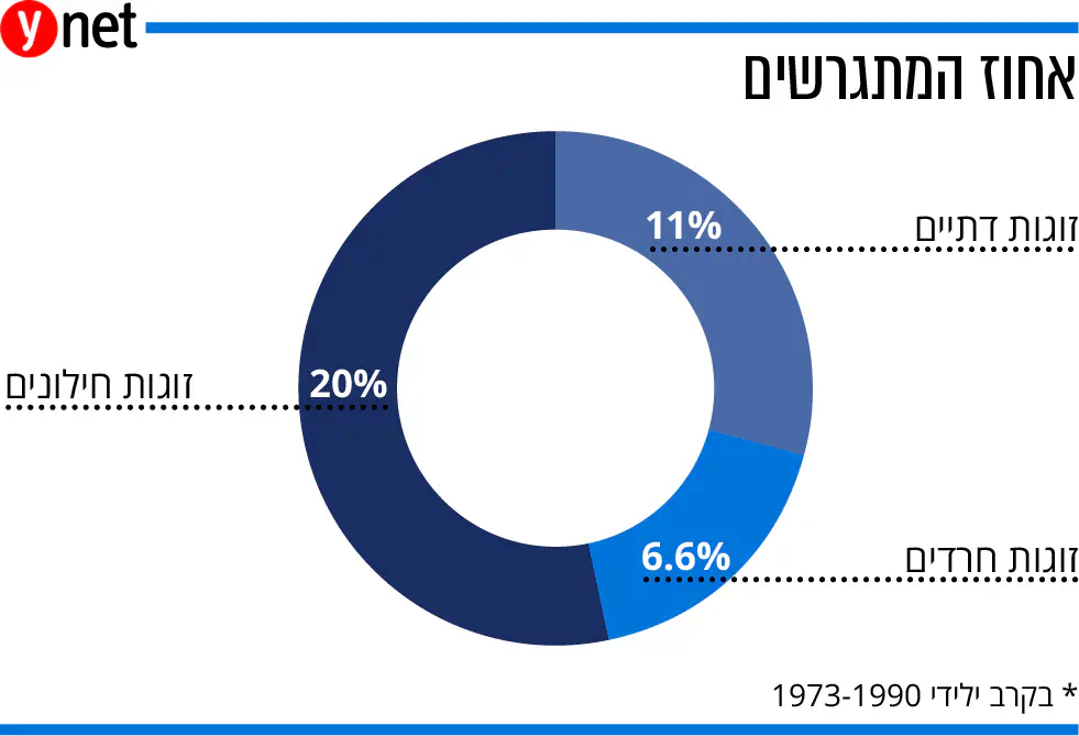 עדיין מתוך X זוגות, יש פחות מתגרשים אצל החרדים