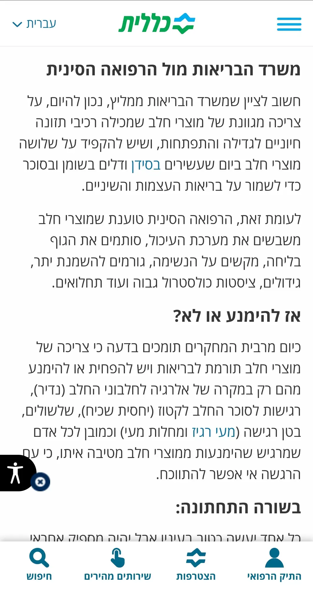 אנקדוטה: ראיתי פעם בקופ''ח פלייר בנושא צריכת סידן. כל הפלייר שיבח מוצרי חלב עד בלי די, והיתה רשימה בסוף של מוצרים עשירים בסידן. בראש הרשימה - 5-6 מוצרי חלב.