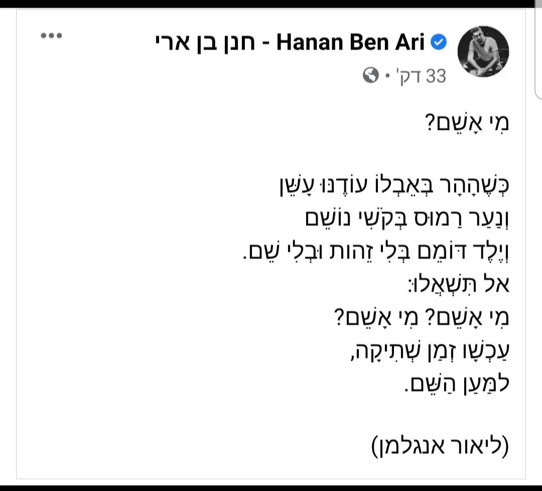 נגיד היום, כשאנחנו שותתי דם מהאירוע, זה לא הזמן לתת ביקורת אלא לתמוך ולאהוב..