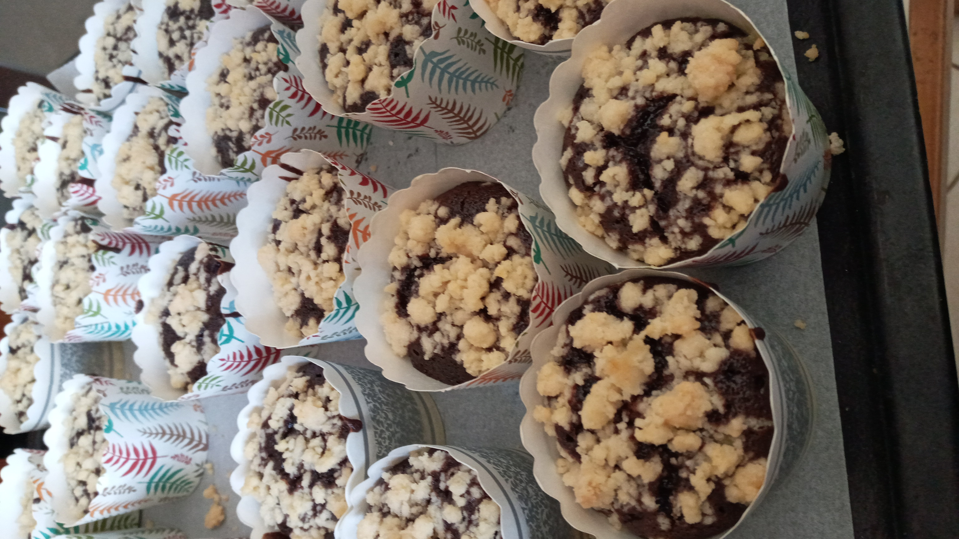 אחרי האפיה- מורחים ממרח שוקולד/ ממרח שאוהבים/ שוקולד מומס עם חמאת בוטנים או טחינה, ומעל מפוררים את הפירורים.