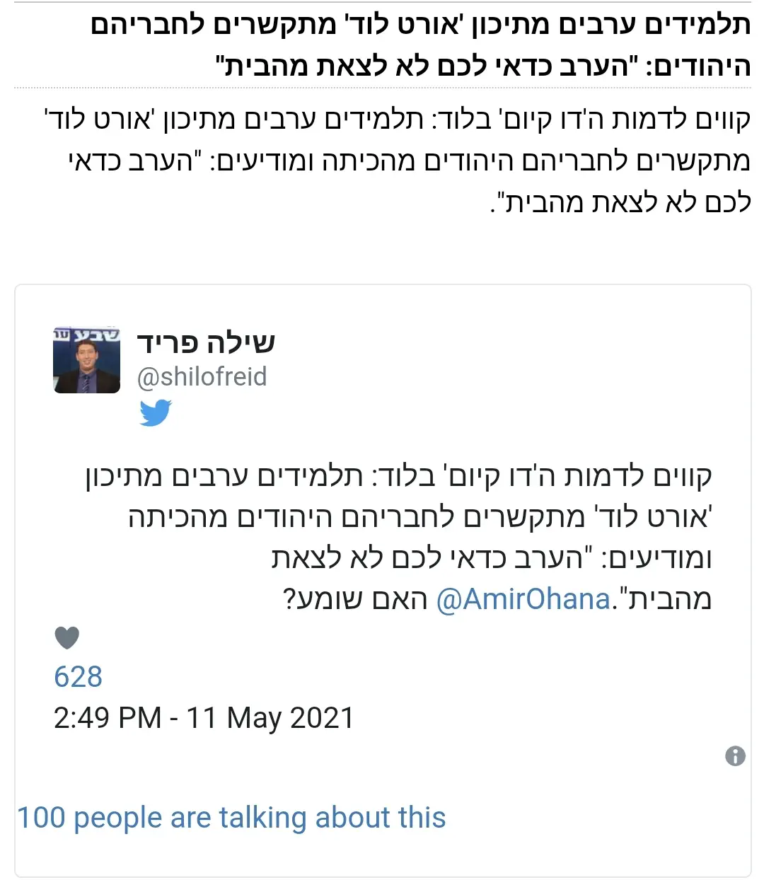 ה. אני חושב שאי אפשר להתכחש למציאות. כנראה שיהיו גם פורעי חוק שיגינו עלינו קצת, אבל אני לא ממליץ על הדרך הזו. אני רק מצביע על תופעה שלפחות בית המשפט חושב שקיימת (הרי הם עצרו את היהודי שירה בלוד, אז הם כנראה חששו שהוא עובר על החוק)