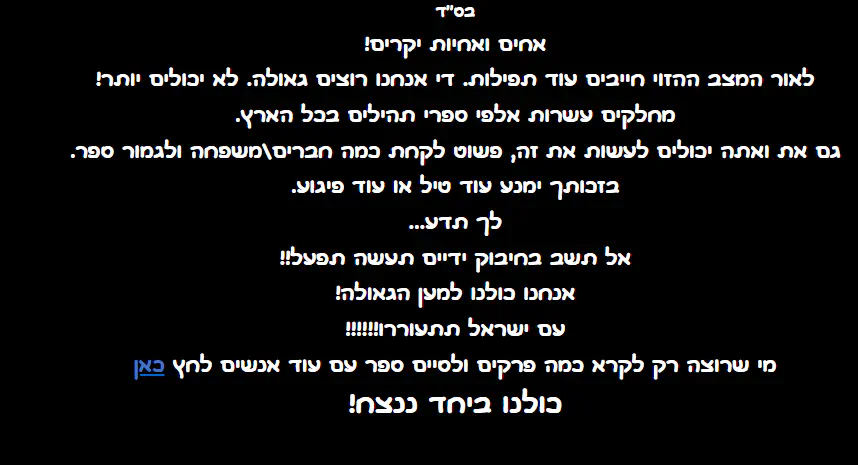 בואו נחלק גם אנחנו ספר תהילים. וקחו על עצמכם כל אחד לוקח גם חבר'ה ומסימים.