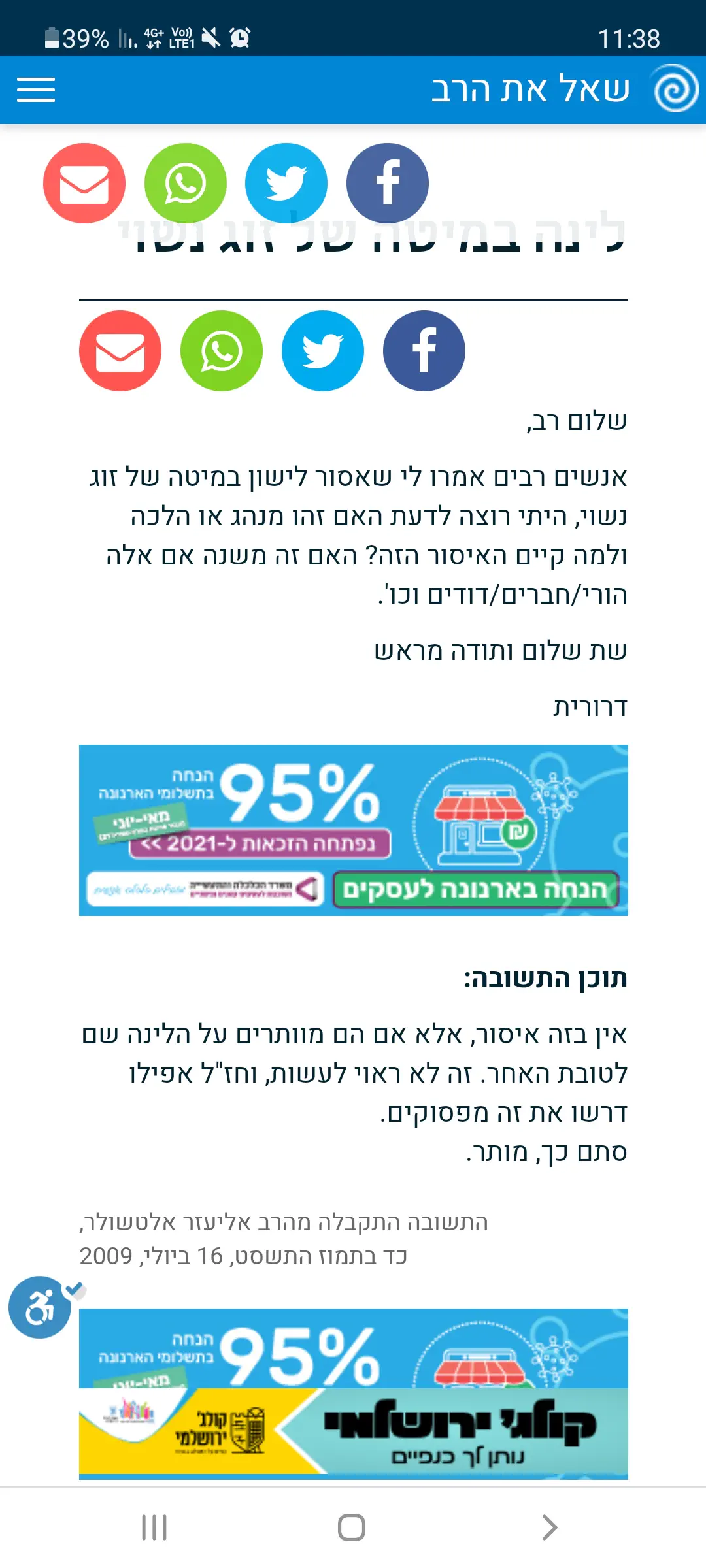 ) גם אדם לא נשוי מסוגל להבין שמיטות של זוג זה אינטימי, לא?