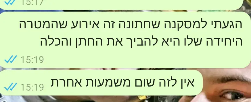 אני עדיין מחכה שתיצור איתי קשר כדי להודיע שזה לא רלוונטי 12 שנה אחרי החתונה.