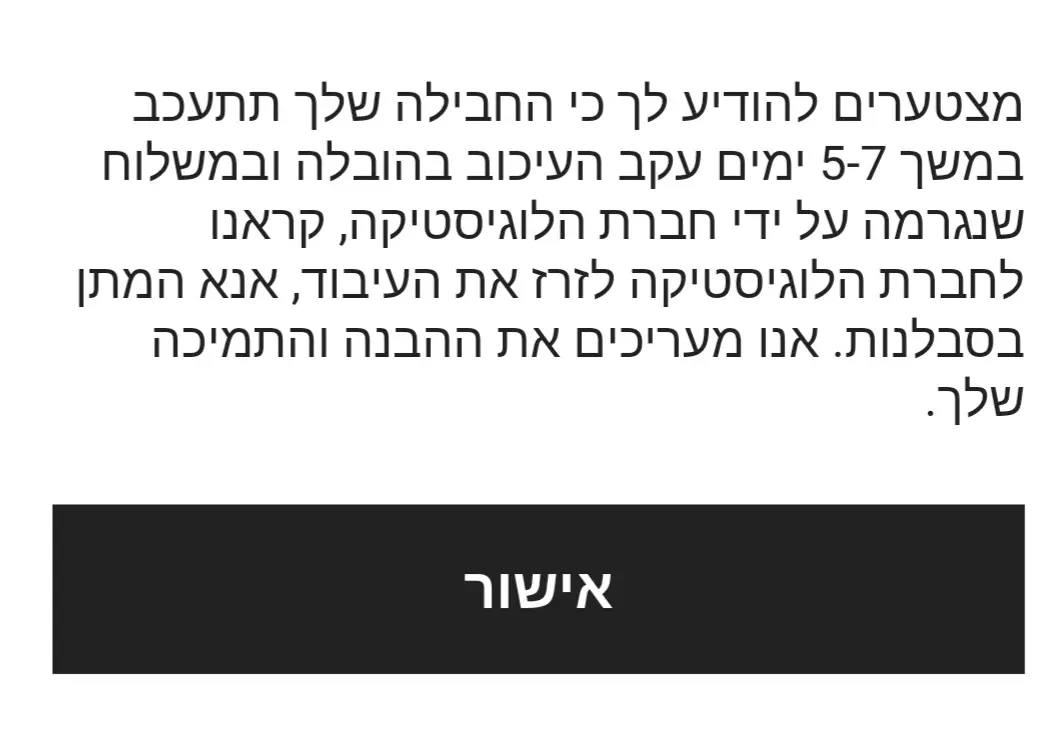 באפליקציה מופיע לי עדיין במסלול משלוח לישראל לא מופיע מי החברה עצמה