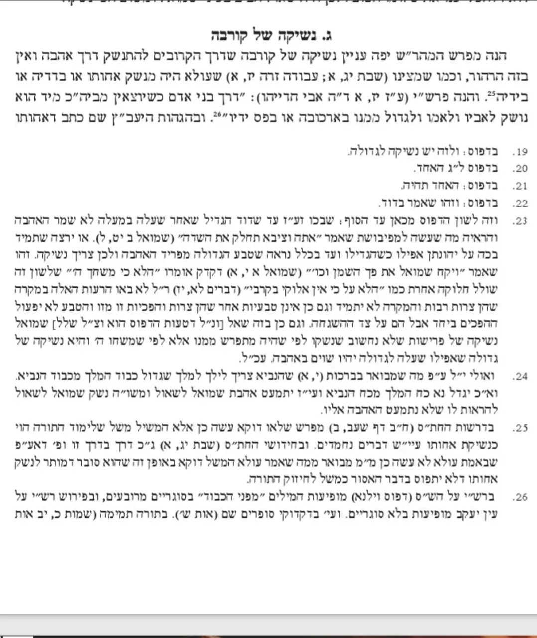 וכבר עמדו בזה כמה וכמה מרבותינו, ואגב, בתוך הדיון הרמב"ן דווקא כותב שהוא נשקה על כתפה.