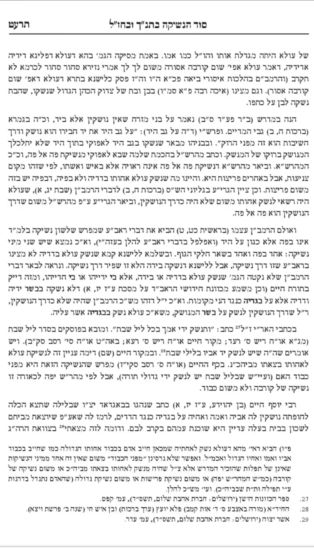 כמו שרואים בשיר השירים וכפי שפירש רש"י, שדווקא זוג מתנשקים בפה, ולא אחרים.