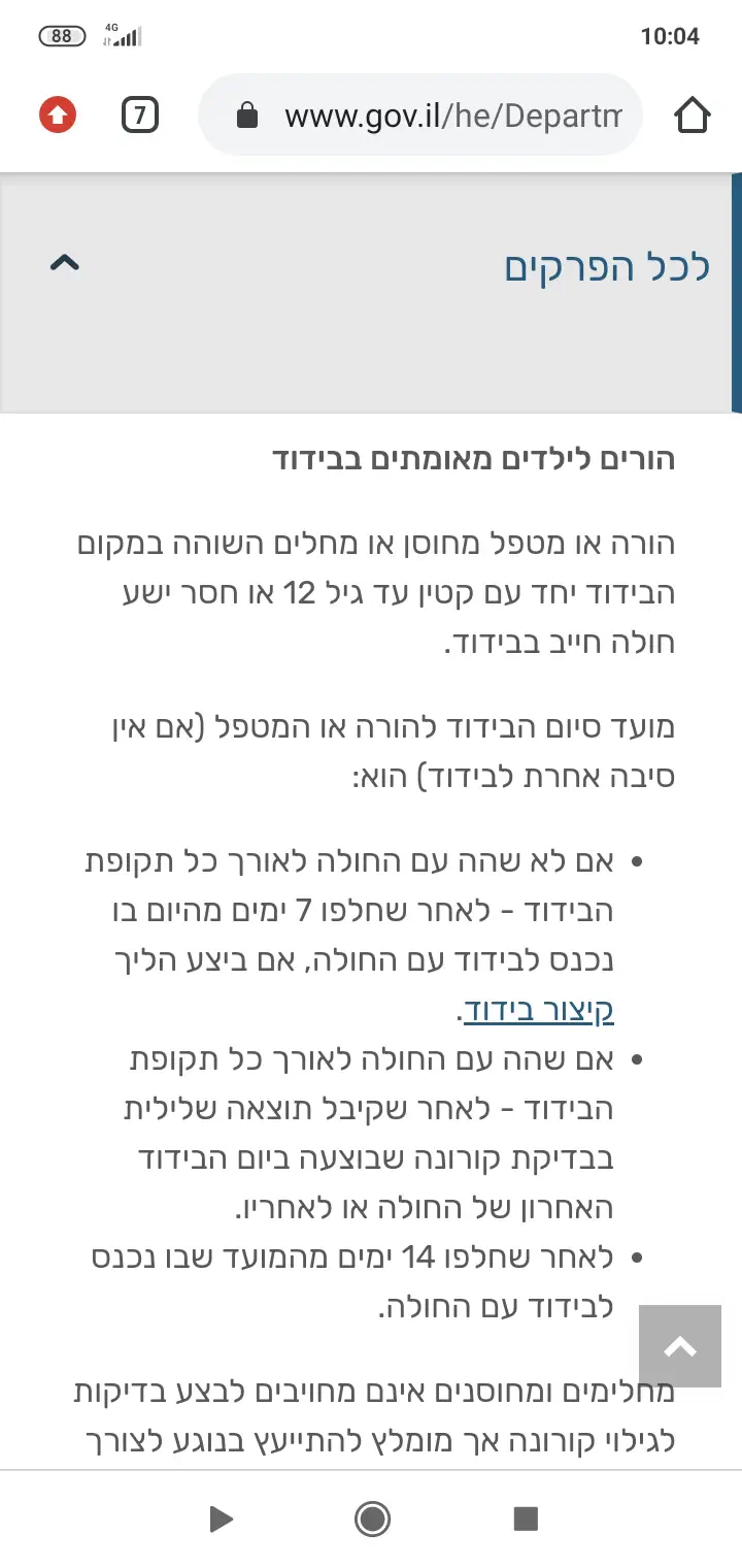 מי שמטפל בחולה מתחת לגיל 12 צריך בידוד.....יעל מהדרום