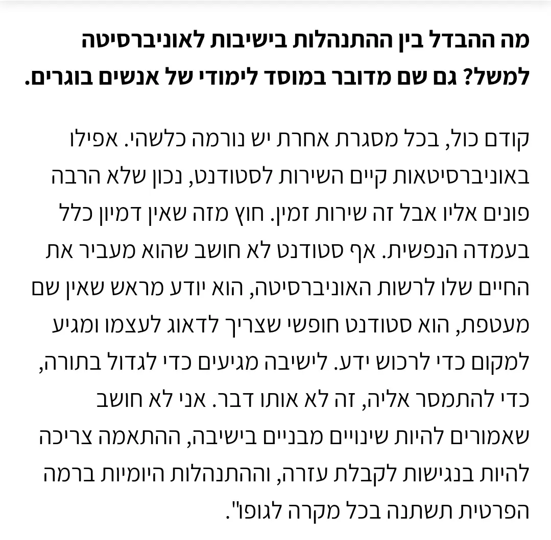 ישיבה היא לא בדיוק מוסד, היסטורית ישיבה היא מרחב שנותן לאנשים צעירים עצמאות יחסית, מסלולים לצמיחה והזדמנויות.