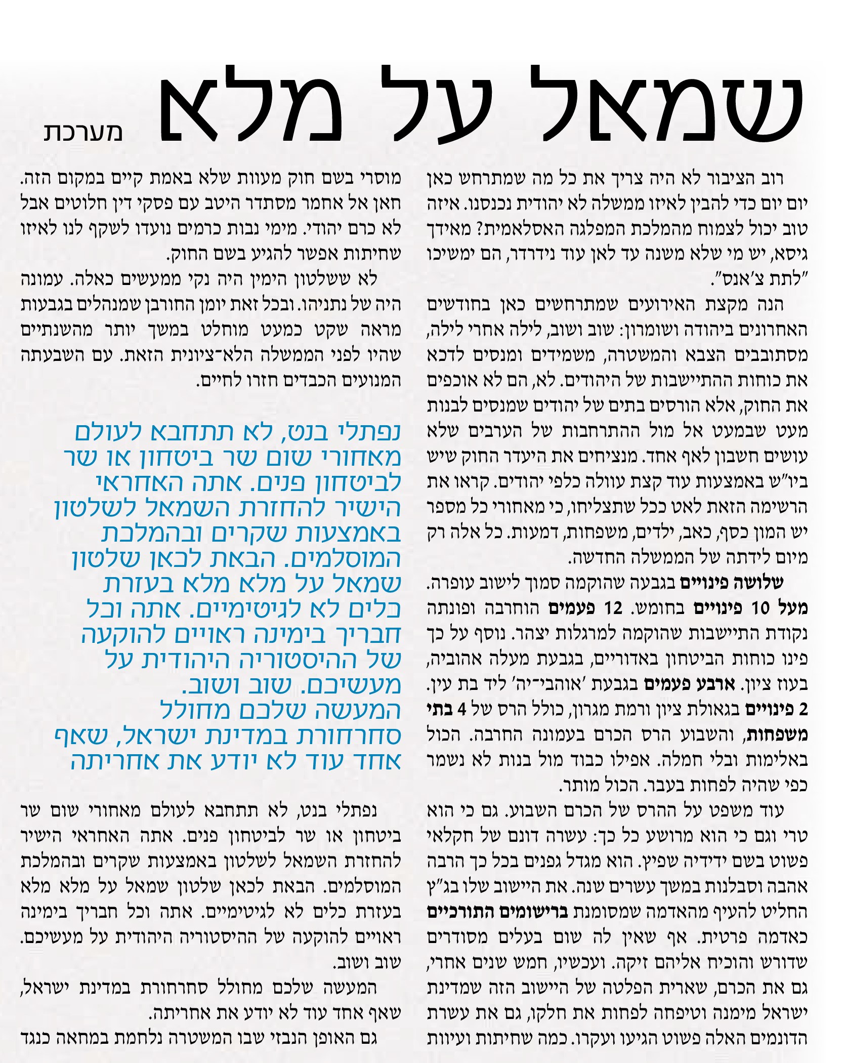 "מה גורם לזעזוע הממשלה מאשר הדיבור על ארץ ישראל.