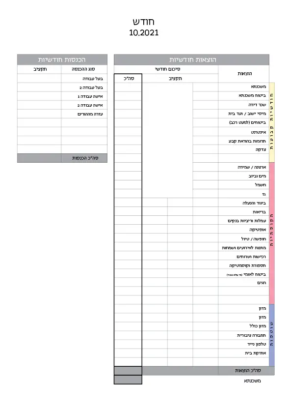 מחלקת להוצאות "קשיחות" שאותם אי אפשר לשנות כל כך (ביטוח בריאות, חבילות פלאפון, חינוך, שכר דירה, ארנונה וכו')