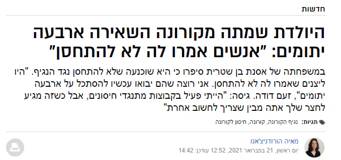 ההתנגדות לחיסון שמציל חיים מצד עצמו לא ברורה לי ולעולם לא תהיה כנראה