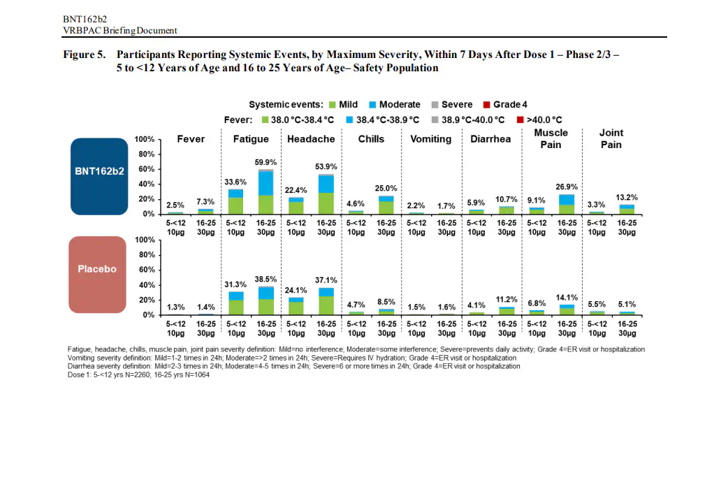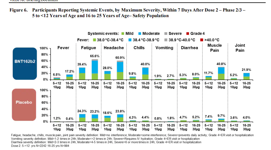 אגב, באופן מרתק, אחרי המנה השנייה הייתה עלייה בשכיחות תופעות הלוואי בקרב קבוצת המחוסנים (בדומה למבוגרים), וירידה בשכיחות תופעות הלוואי בקרב קבוצת הפלצבו.