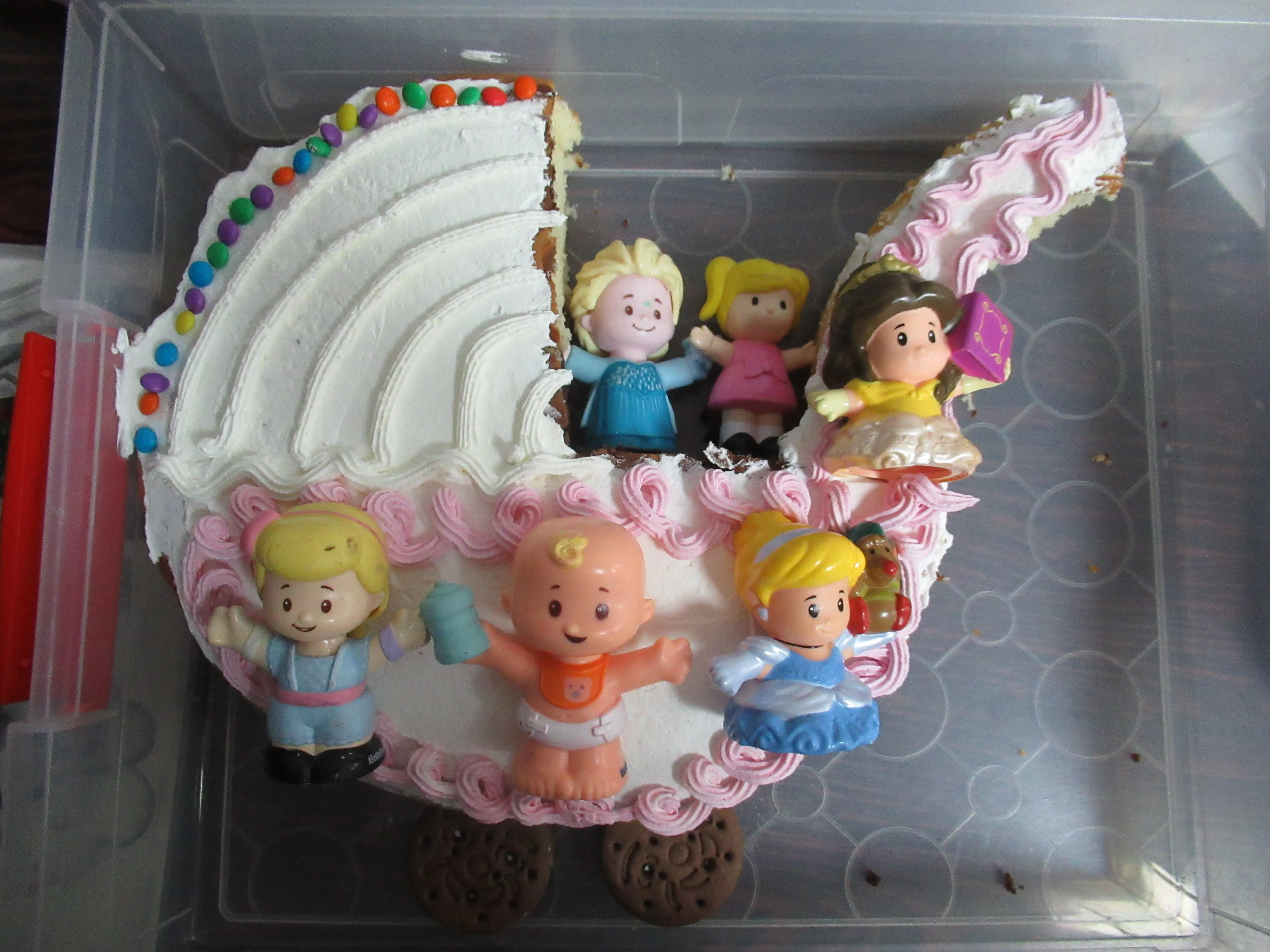 חשבתי עוגה בצורת עגלה ולשים 6 בובות. אבל זה לא כרס, זאת עוגה...