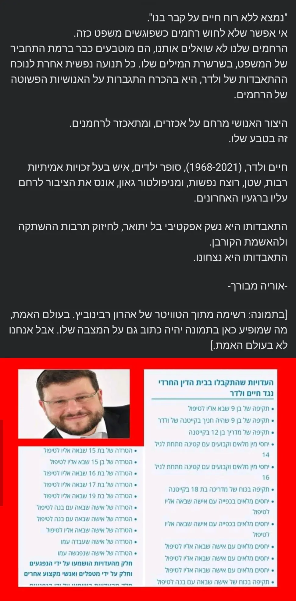 חבל שלא ביקש סליחה ומחילה מהאנשים בהם פגע.