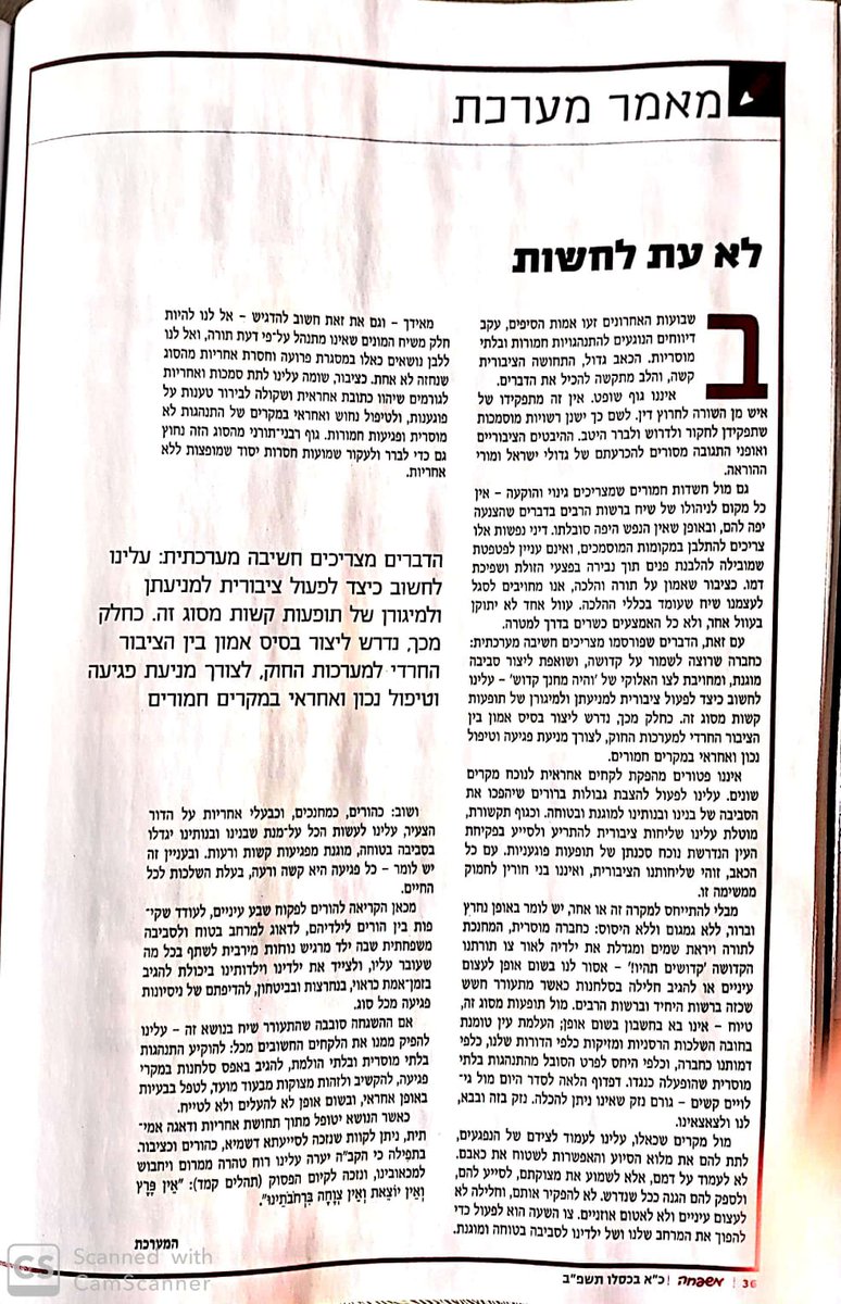 ואני מבין ומפנים שהדבר הכי מסוכן בשלב הזה הוא הטפות על לא לדבר על לשון הרע מהסיבה הפשוטה: הציבור החרדי לא נותן בשלב זה מענה אחר. אין! וממילא, להפחיד בלשון הרע בנושא זה, עלול רק להחמיר את הבעיה.