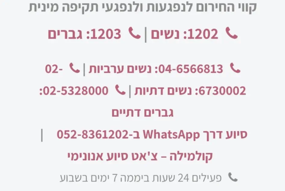 מוקד הווטסאפ של חברים מקשיבים, פעיל בין השעות 7:00-23:00- 052-4683927