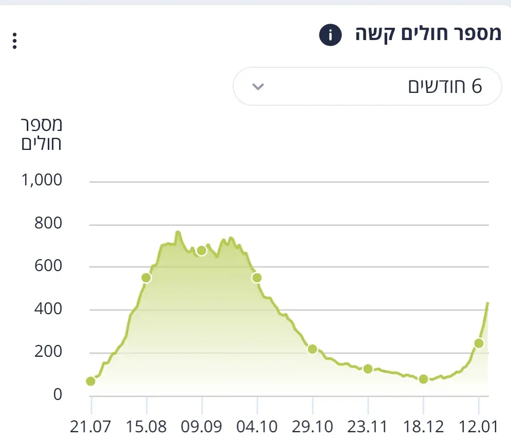 נכון לעכשיו יש 380 חולים קשה לפחות חצי מהם הם מלפני השבוע האחרון עד כמה שהבנתי.