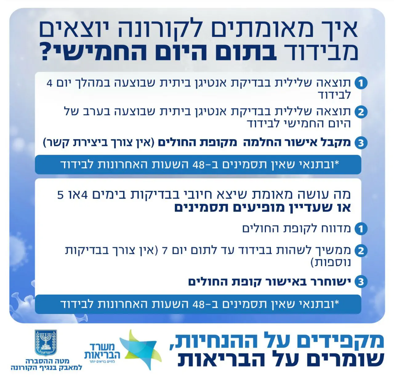 מבחינת משרד הבריאות הוא משוחרר מבידוד.