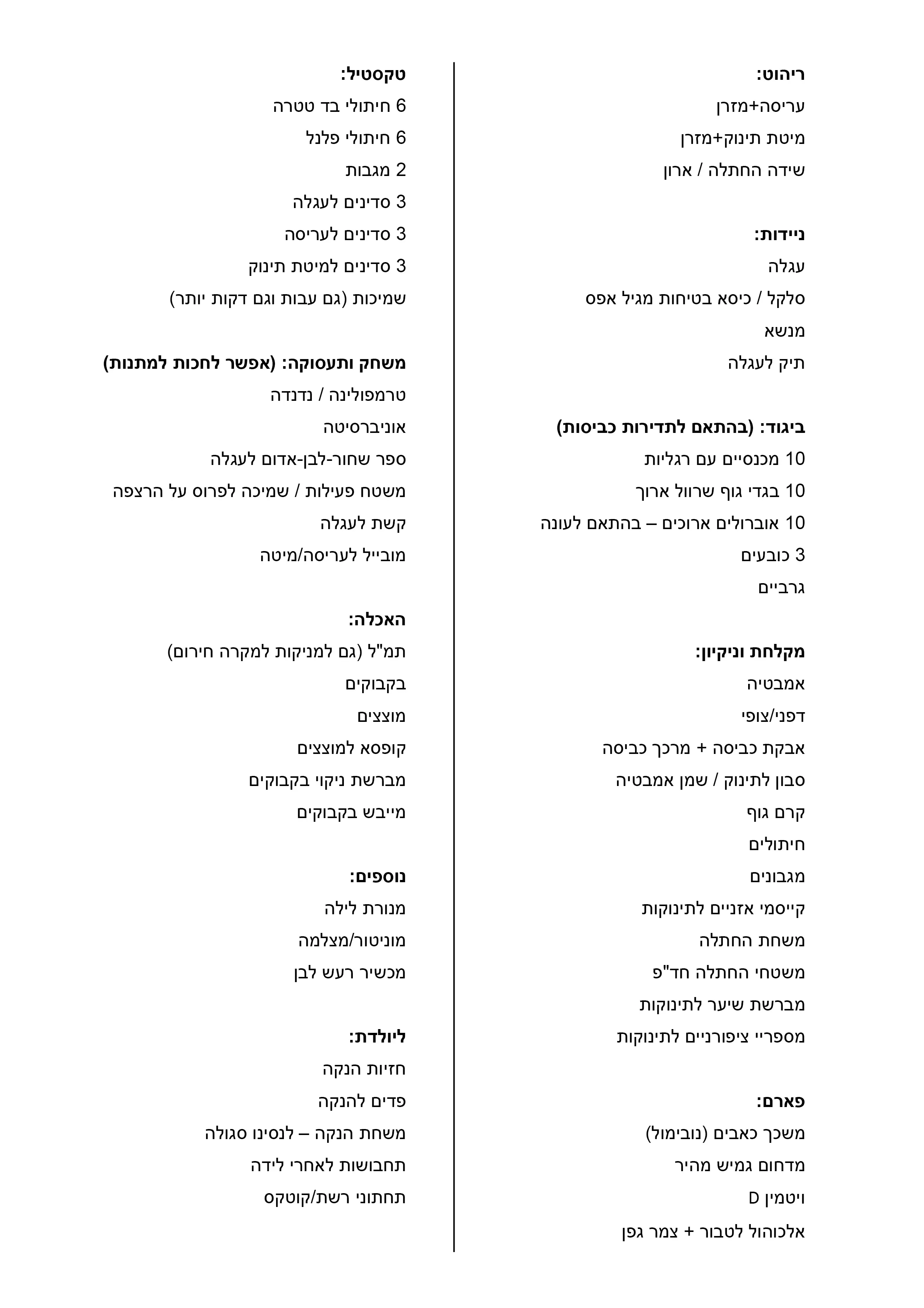 יש למישהי רשימה טובה? ( טיטולים, מוצצים, שמן שקדים וכו')