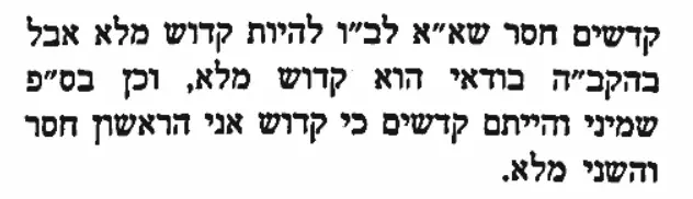 אמנם ישנם מקומות שגם ביחס לבשר ודם המילה קדוש מופיעה בכתיב מלא, אבל בשני הפסוקים הללו הקדושה של בשר ודם נזכרת בהשוואה עם הקדושה של ה׳. ובעוד שהמילה קדוש ביחס לה׳ מופיעה בכתיב מלא ביחס לבשר ודם היא מופיעה בכתיב חסר!