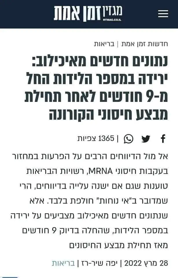 שומו שמיים: החיסונים גורמים לירידה בכמות הלידות! אלה הנתונים הרשמיים של איכילוב!