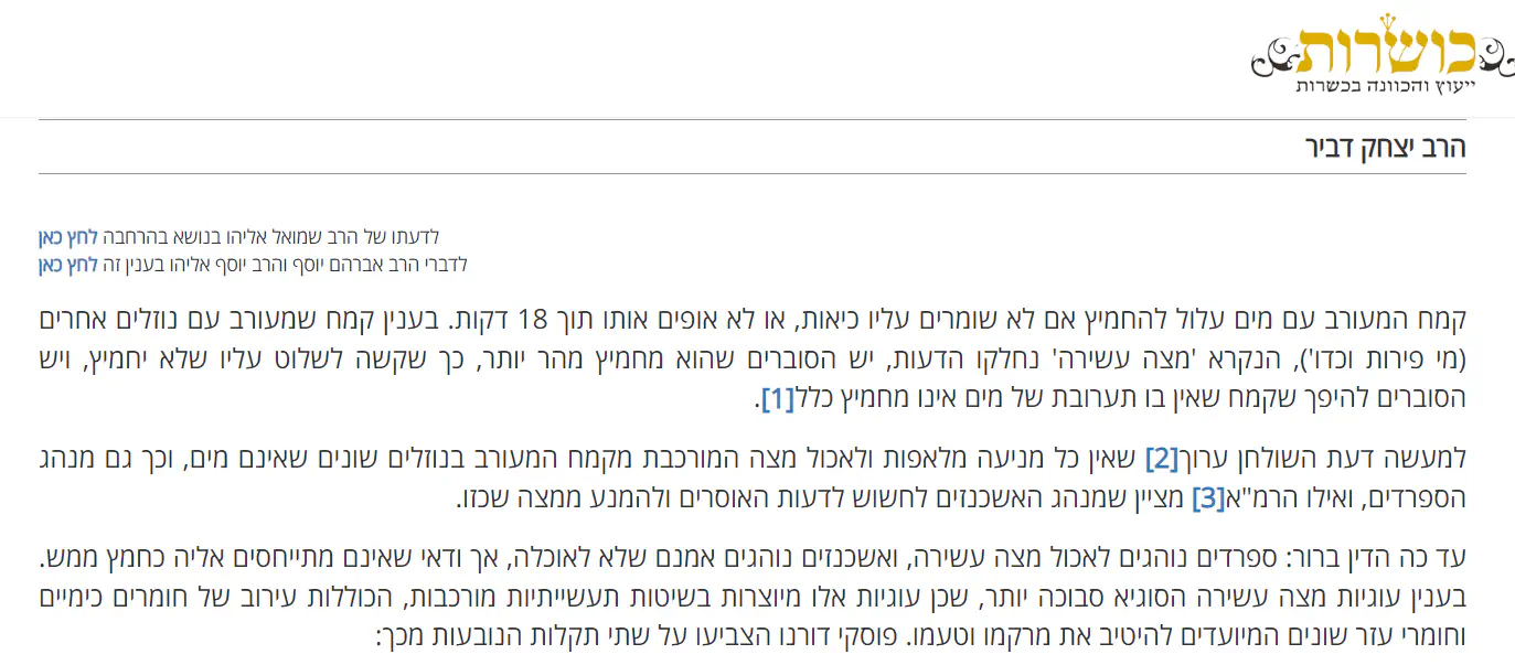 ולאשכנזים מצה עשירה היא ממש חמץ