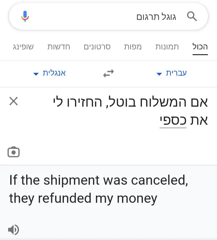 ובתרגום מעברית לאנגלית הוא מתרגם "החזירו לי את כספי" בתור סיפור על מה שקרה בעבר, במקום ציווי למרות שיש התנייה לפני.