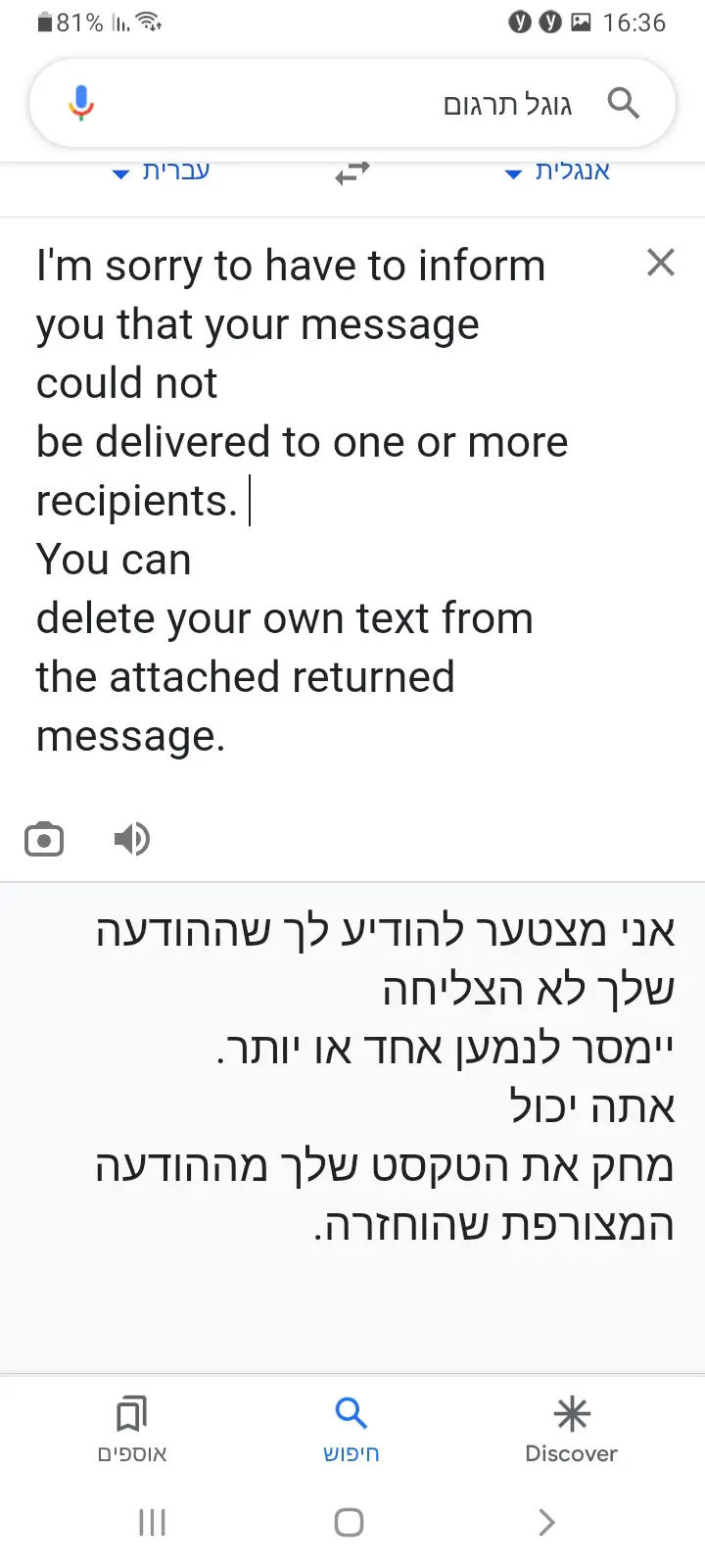 או מה רע ב could not be be delivered שהוא כותב לא הצליחה יימסר.