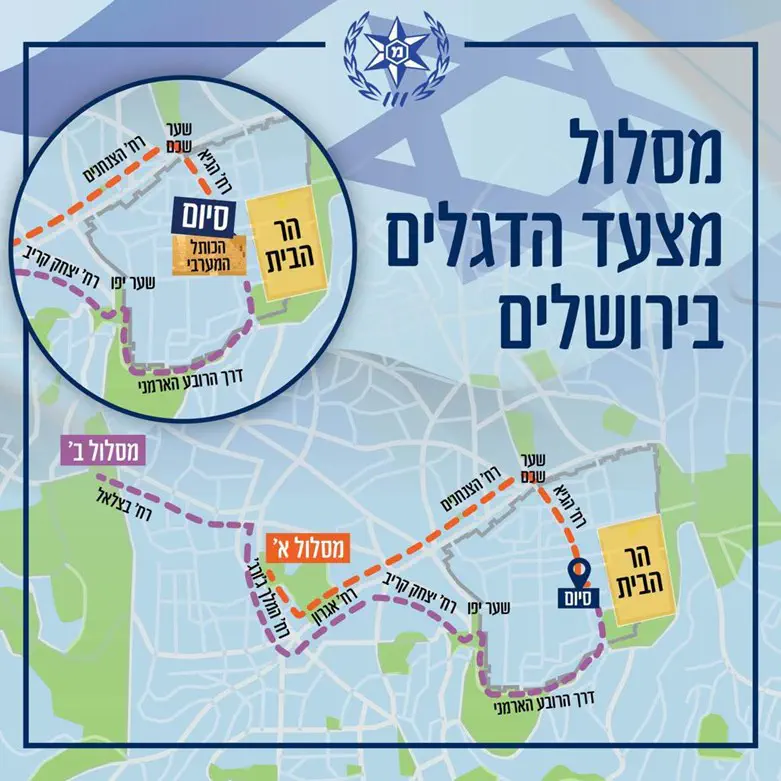 הנה המסלולים, הבנות עוברות דרך שער יפו (מסלול סגול) והבנים דרך שער שכם (מסלול כתום).