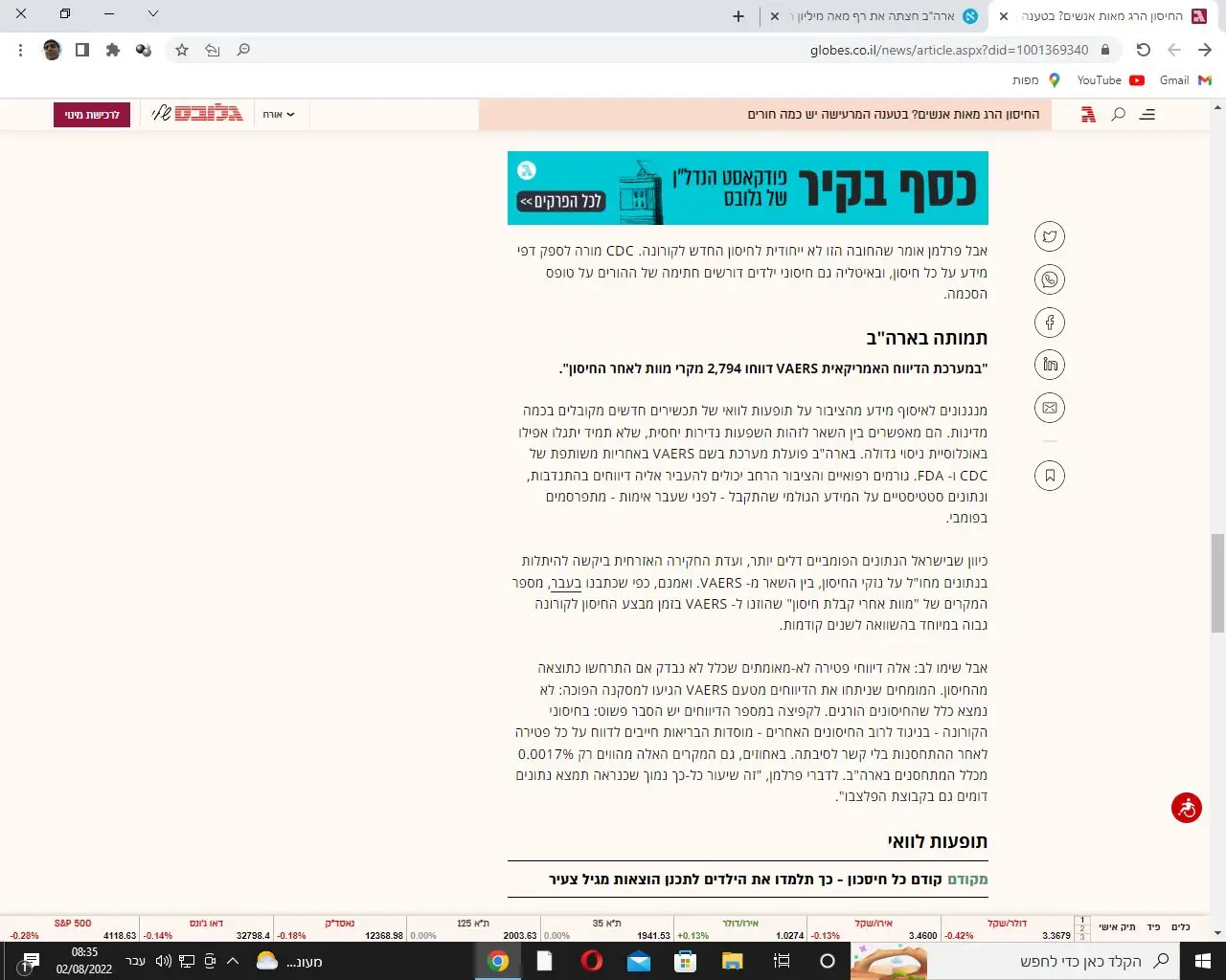 רק 2000 אנשים מכול מי שהתחסנו מתו?
