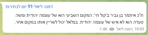 ובנימה האישית, אני אישית בע״ה מתכוון לגייס באופן אקטיבי הרבה קולות מהמשפחה והחברים, והמניע שלי זה בפירוש תמיכה בבן גביר.