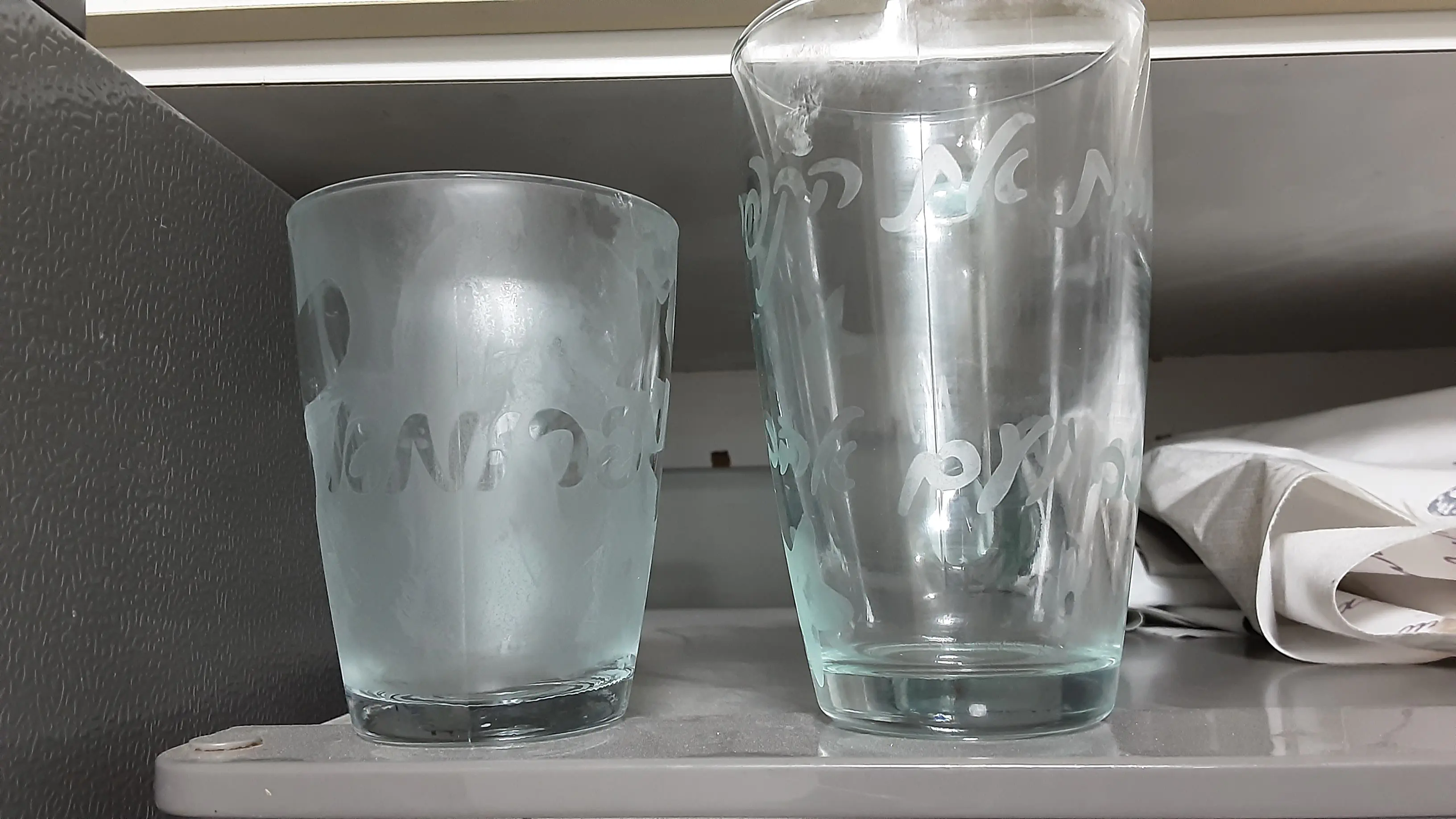 היה אפשרות להדביק את הפנים ואז לצרוב את כל הכוס והיא יצאה לבנה או להדביק את המסגרת ולצרוב את הפנים.